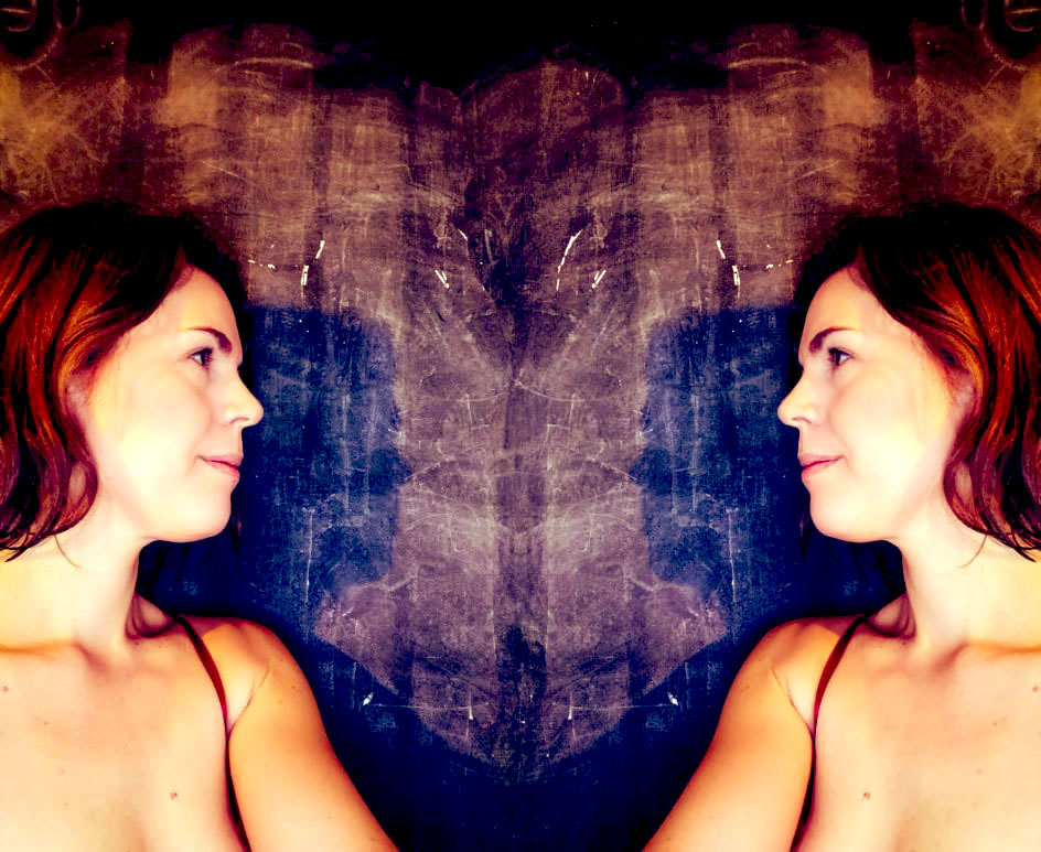 ”kat-ink-a-kat-ink-a-kat-ink-a!” som ett stånkande, tuffande tåg for hon genom skallen på mig strax efter att jag brutit mig loss från ett elvaårigt äktenskap. Processen slet mig itu, bokstavligt talat. Jag sökte efter min nya identitet, vem jag hade blivit livet efter äktenskapet och fann ett väsen inom mig. Med ens förstod jag då att jag blivit två.