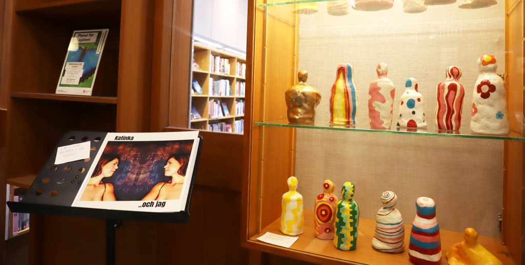 Den 19-30/6 2023 ställde jag och Katinka ut på Majornas bibliotek. Så här såg det ut: