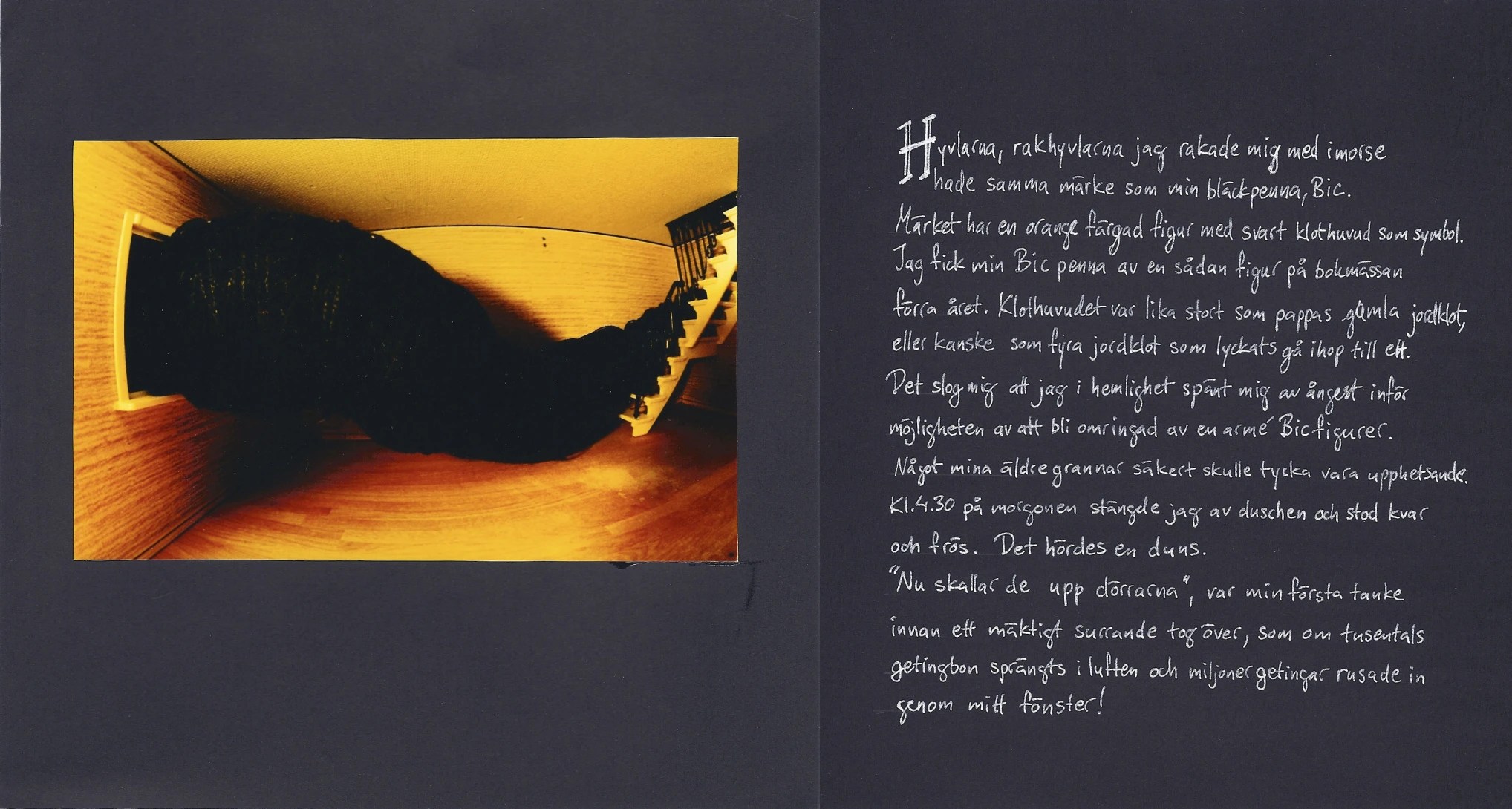 Här visar jag utdrag ur mitt gamla fotoalbum Dagen H från 2008. Boken är delvis handgjord och är ett original. Genom text och bild kan ni följa en okänd människas hallucinerande.