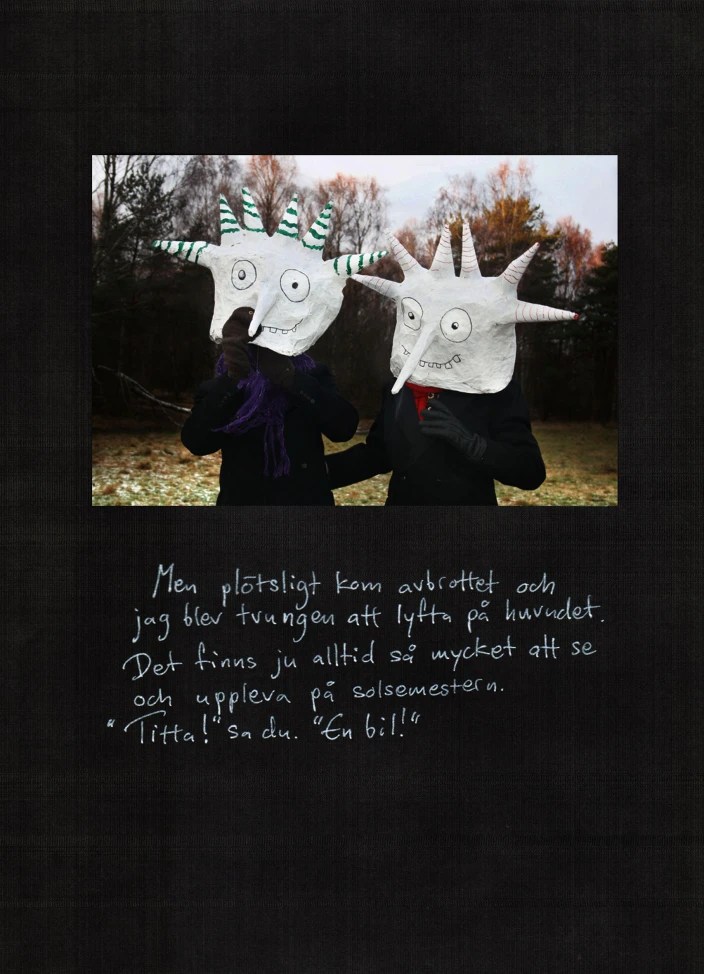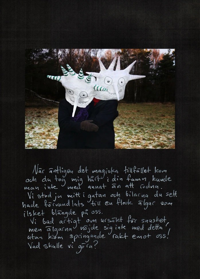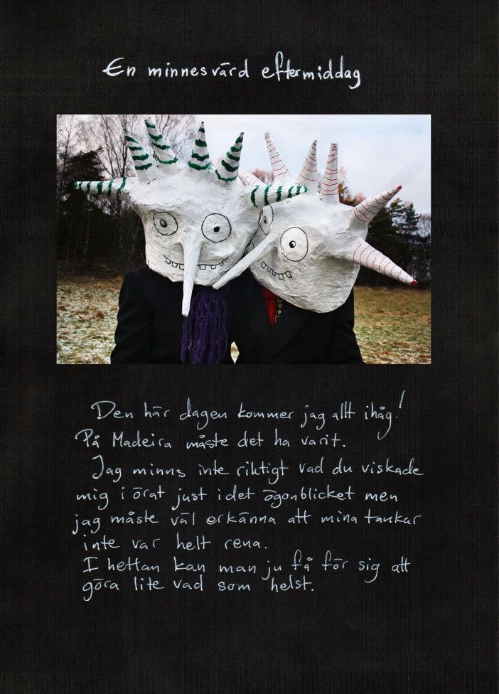 Det konstnärliga bokprojektet, Kärlek och navelludd gav de konstnärer som tycker om att arbeta med text och bild möjligheten att bidra med ett eget verk som på något sätt skulle förhålla sig till titeln. bildserien En minnesvärd eftermiddag var mitt bidrag till boken. Figurerna i serien blev också bokförlaget 284 logga.