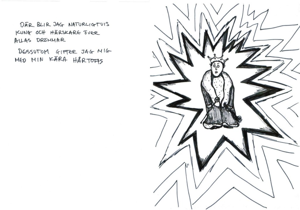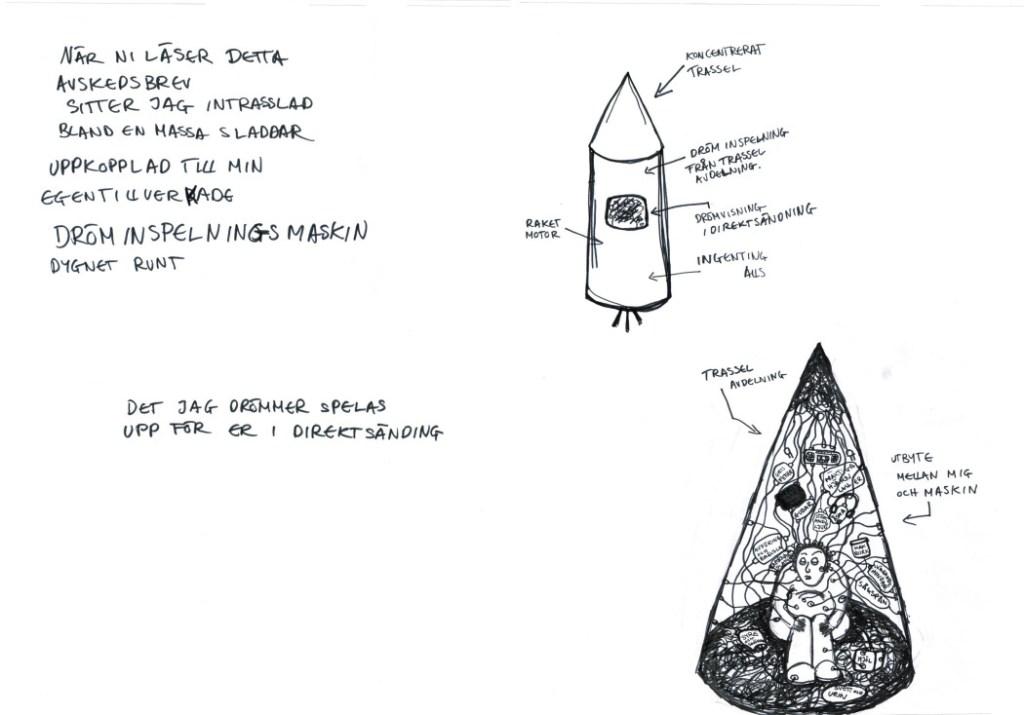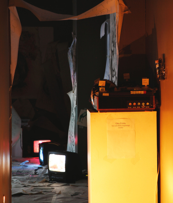 Både Ottos egen dröminspelningsmaskin, inspelade drömmar samt teckningar fanns att se och uppleva i rummet. De inspelade drömmarna visades på flera tvskärmar samtidigt vilket utgjorde ett ljud och bildkluster.