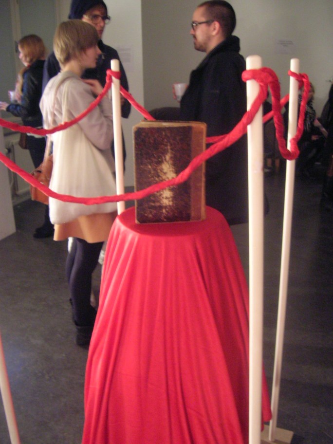Vampyrens bok ställdes ut som ett museiföremål på Galleri monitor. I rummet fanns en soffa som man kunde sjunka ner för att lyssna till inspelade kapitel ur boken. På en sockel stod en dator där man kunde bläddra i scrapbookens inscannade sidor och runt om i rummet hade museiintendenten placerat ut föremål ur boken.