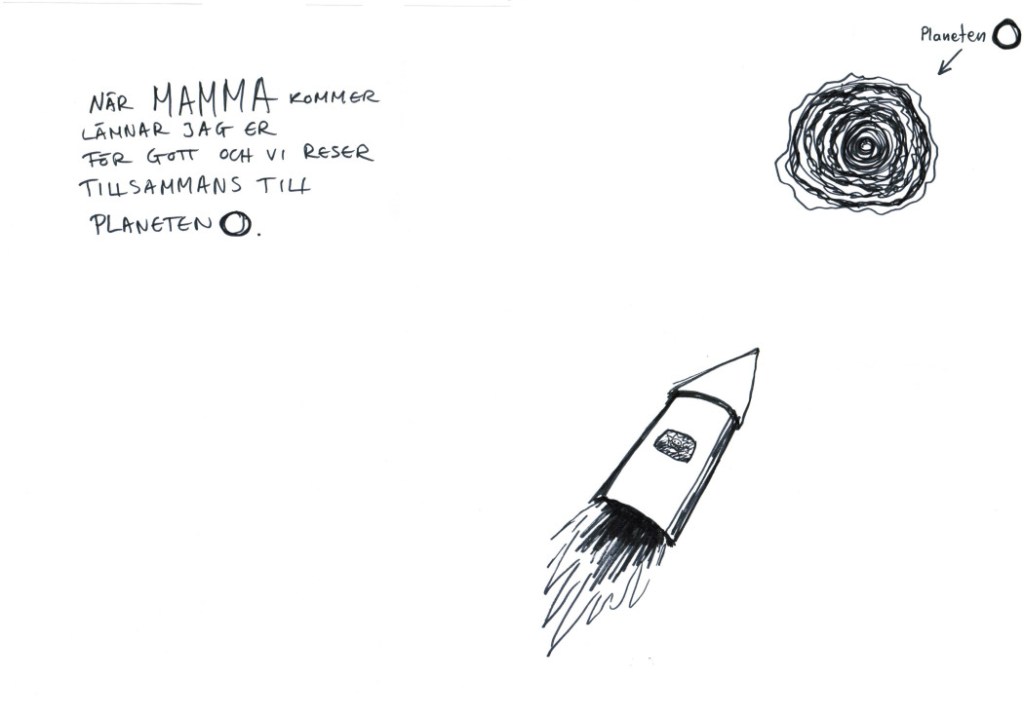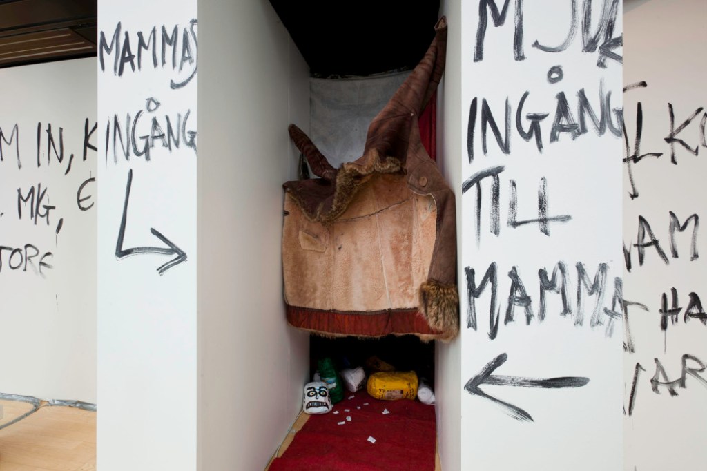 Jag kände mig inte riktigt klar med min karaktär Otto Frisk. Jag ville ta reda på mer om vem Otto var, hans bakgrund, hans personlighet och livserfarenheter. Ottos nya verk kretsade kring hans liv och i fokus stod Ottos förhållande till sin mamma. Att jag just blivit mamma när jag fått erbjudandet om att ställa ut på Halmstad konsthall och att jag dessutom väntade mitt andra barn när det var dags att sätta upp utställningen två år senare vägde naturligtvis in. Samtidigt som jag spårade Otto Frisk personlighet kom jag att arbeta kring vikten av föräldraskapet och hur barns förhållande till sina föräldrar påverkar deras liv.